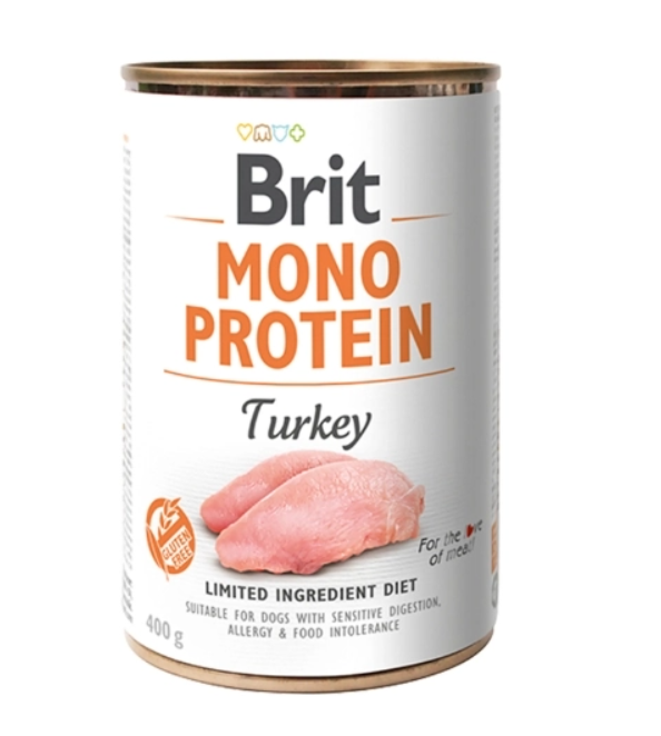 PROTEÍNA DE PAVO 100% PURA Brit Mono Protein proporciona una nutrición completa y equilibrada. La fórmula se basa en un solo tipo de proteína y es ideal para reducir el riesgo de alergias e intolerancia a los alimentos.