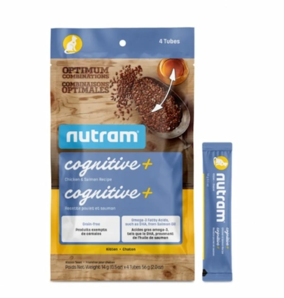 Nutram Cognitive+ Kitten Treats apoya el desarrollo y la función del cerebro. Nuestro enfoque holístico comienza con un desarrollo saludable. El aceite de linaza y salmón, fuentes ricas en ácidos grasos Omega-3, favorecen el desarrollo cognitivo normal de su mascota joven.